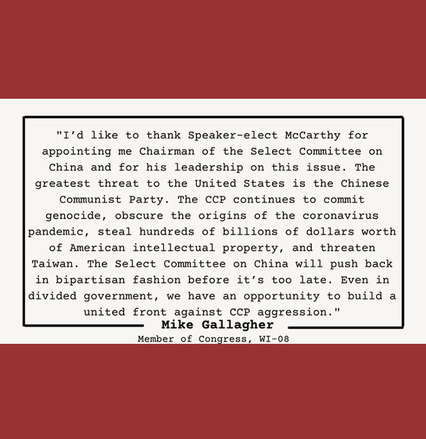 Statement by Representative Mike Gallagher, after being appointed as the Chairmen of the Select Committee on China (Photo Courtesy of Twitter/Mike Gallagher)