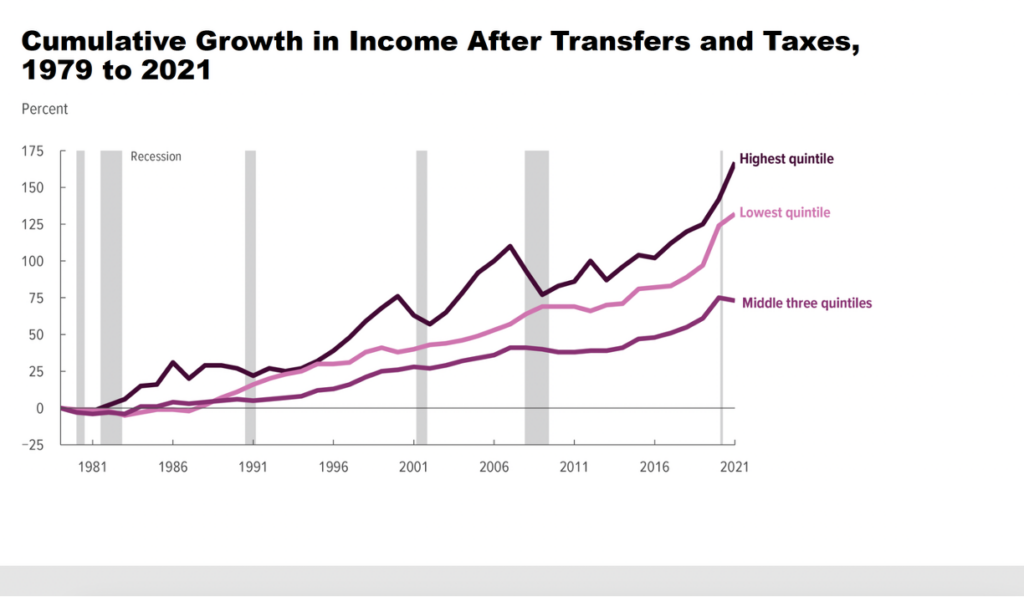 Source: Distribution of Household Income 1973-2021, Congressional Budget Office. Reflects growth in real income.