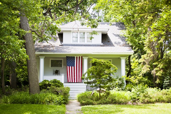 American home with a U.S. flag. (Maxy M via Shutterstock)
