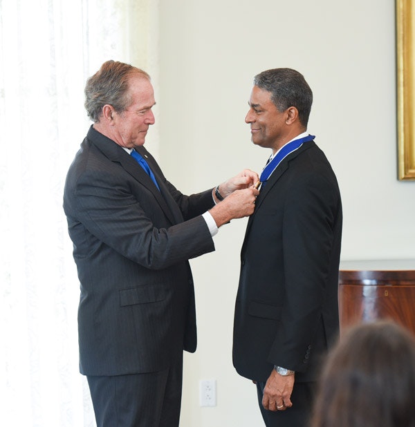 President Bush awards the Presidential Medal of Freedom to Dr. Oscar Biscet at the Bush Center on June 23, 2016. (Grant Miller / George W. Bush Presidential Center)