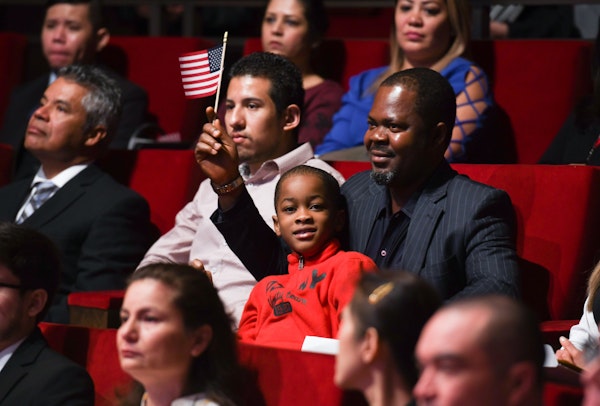 Immigrants appear at a swearing in ceremony for U.S. citizenship in Los Angeles, California. (Photo by P_Wei for Getty Images)
