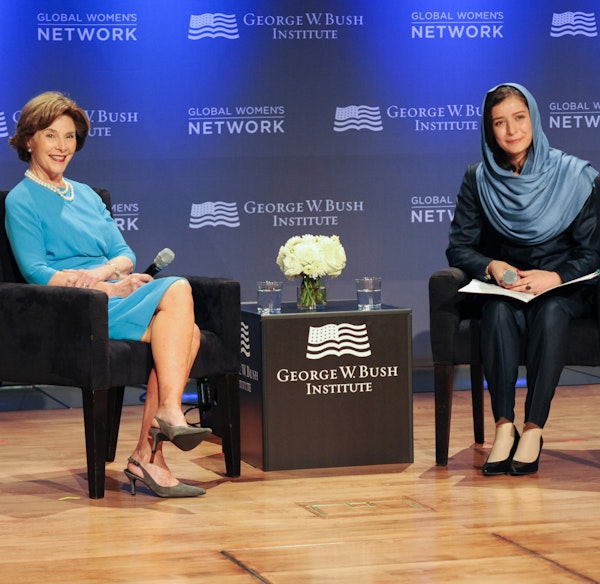 Mrs. Laura Bush and Onaba Payab at the Bush Institute's Global Women's Network event. (Photo by Grant Miller)