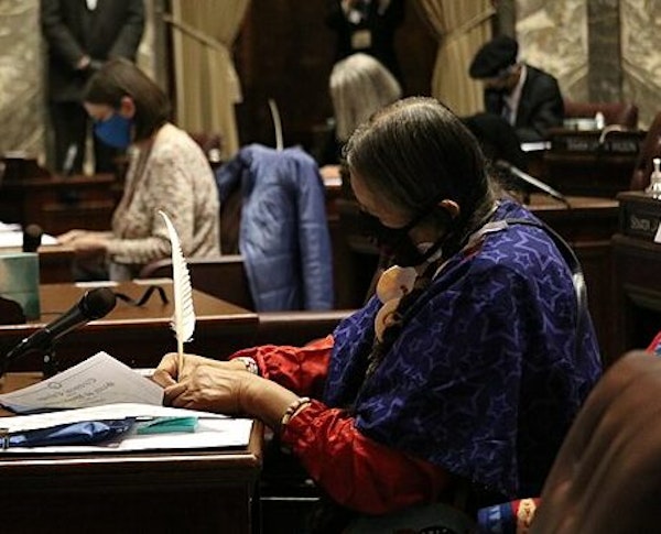 Patricia Whitefoot casts her Electoral College vote in Olympia, Washington on December 14, 2020. (Courtesy of Wikicommons)
